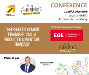 L'ABEA a le plaisir de relayer l'invitation à une conférence organisée conjointement par l'École de Guerre Économique et le think tank Les Z'Homnivores !