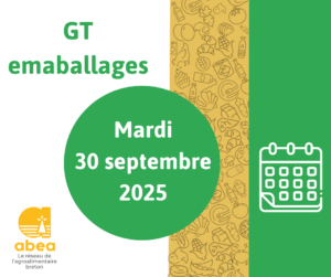 Le Groupe de Travail (GT) sur les emballages se tiendra le 30 septembre 2025 de 14h30 à 15h30 en visioconférence.