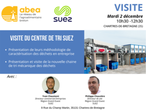 Dans le cadre des travaux et des discussions dans les différents GT Emballage et déchets, nous vous proposons une visite du centre de tri SUEZ à Chartres de Bretagne le 2 décembre de 10h30 à 12h30.