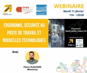 Dans le cadre du Programme Destination Usine 4.0 organisé par l'ABEA et l'AREA Pays de la Loire, en collaboration avec FUNAE et le Groupe API, nous vous proposons un webinaire sur la thématique "ergonomie, sécurité au poste de travail et nouvelles technologies".