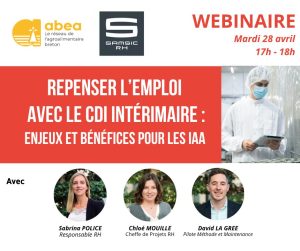Lors de ce webinaire, David La Grée apportera un éclairage national sur la mise en place et le pilotage du dispositif, tandis que Chloé Mouillé partagera un retour d’expérience terrain, à partir de cas concrets au sein d’entreprises agroalimentaires telles qu’Eurial, Elivia, LDC Cavol, Galliance ou Procanar.