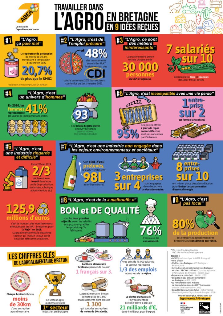 L’ABEA répond à ces différentes idées reçues à travers une communication “Travailler dans l’agroalimentaire en Bretagne en 9 idées reçues”.